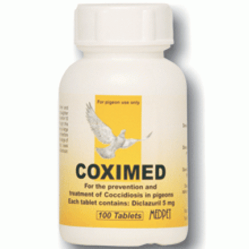 - Tratamiento de dósis única; 1 sola pastilla de Coximed cura hasta el 98% de los casos de coccidiosis en palomas y aves rapaces.