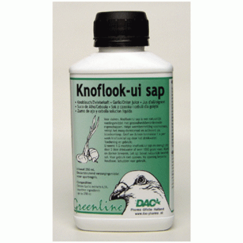 El ajo y el jugo de la cebolla de DAC es un producto de la promoción de la salud natural. El ajo y el jugo de la cebolla le brinda a su paloma con la prevención de la infestación del gusano nuevo, estimula la circulación y limpia el tracto gastrointestinal.