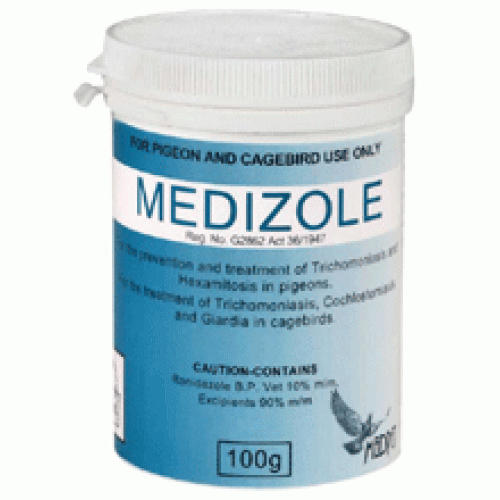 Buscar por enfermedad o ingrediente: medizole, medpet, antibiotics, canker, hexamitiasis, trichomoniasis, ronidazole, 100g