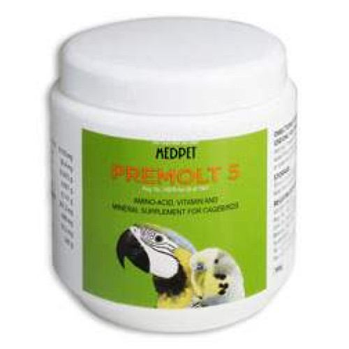 Premolt 5 de MedPet es vitaminas / minerales / oligoelementos y suplemento de aminoácidos para pájaros de jaula. Una ayuda en la prevención y el tratamiento de desplume de la pluma.