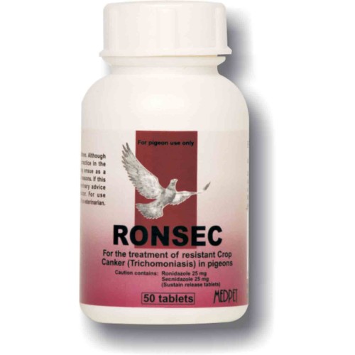 Ronsec 50 pastillas de MedPet pastillas es un tratamiento altamente eficaz contra la tricomoniasis en palomas y pájaros.